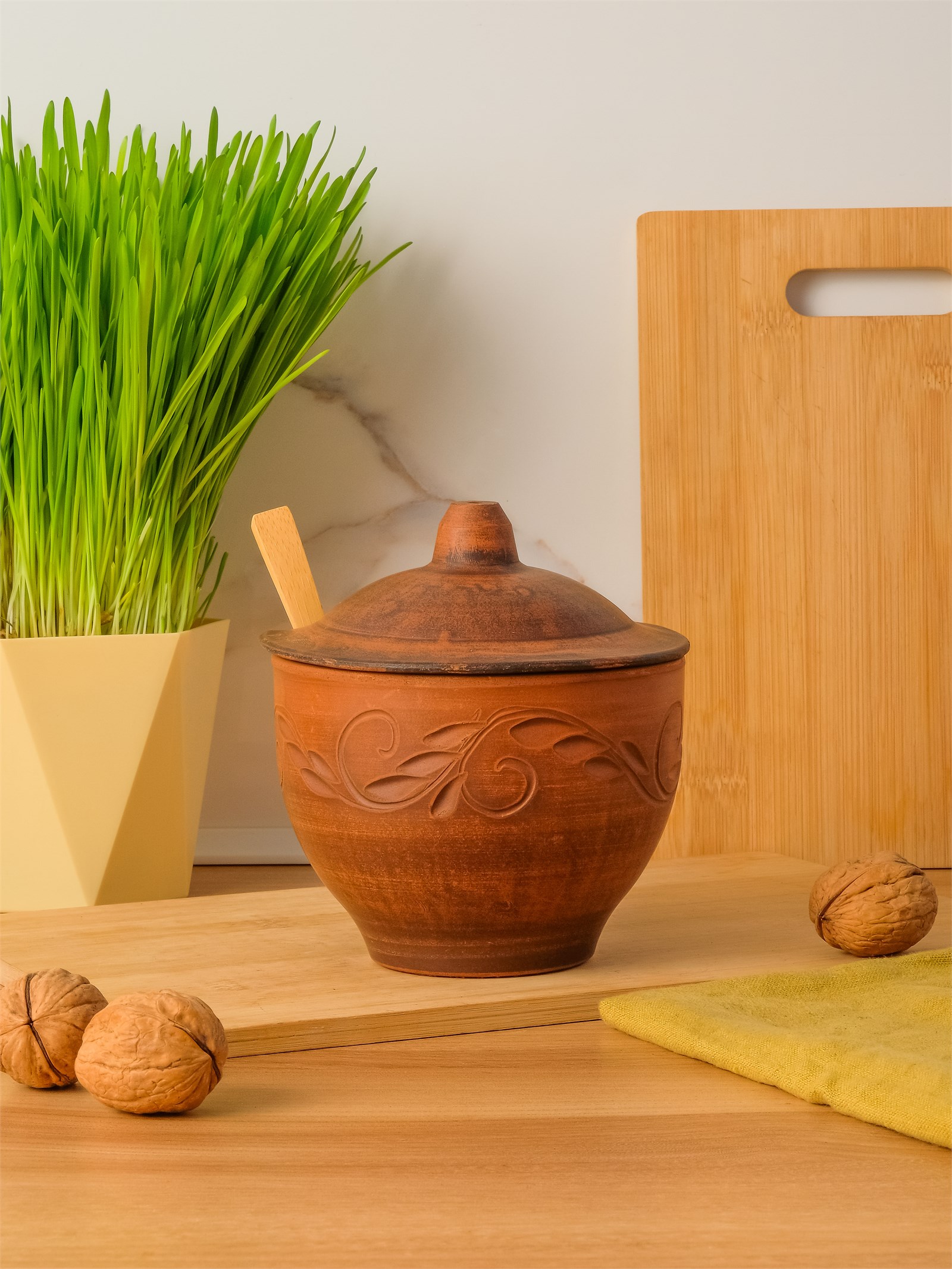 — Не оставляйте еду в такой посуде надолго, так как она впитывает запахи за счет пористой структуры глины.