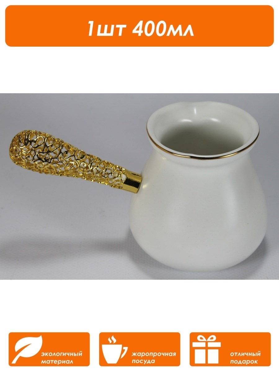 A101219 Турка с ненагреваемой ручкой жаропрочная керамика 400 мл в ПУ белая